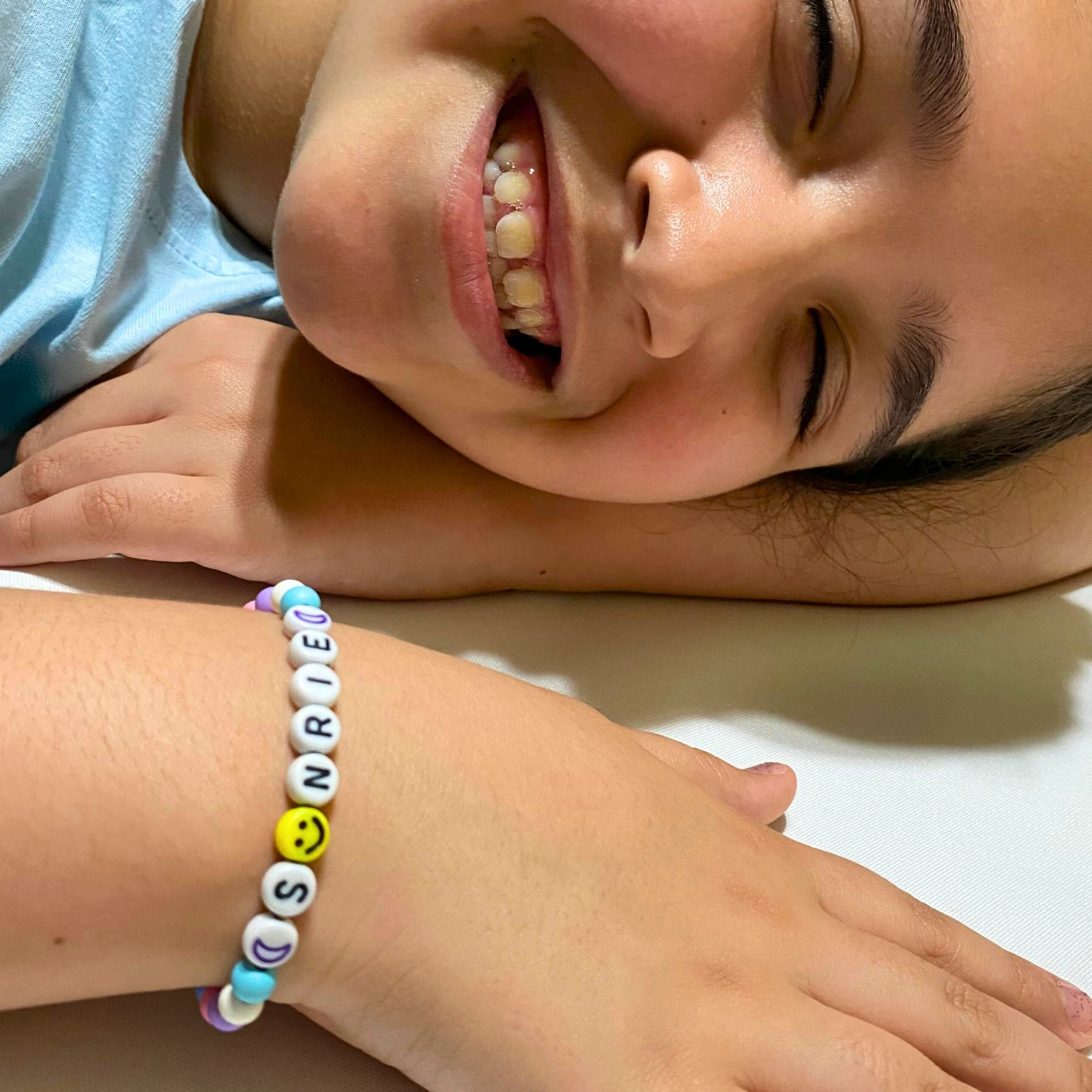Comencé este proyecto con la ayuda de mis papás, que me acompañan en cada paso, porque tengo un sueño muy grande: poder viajar a España para ver a mi madrina y a mi primita a quienes no veo hace más de 3 años. Cada pulsera que creo es un poquito más de cercanía hacia ellas.